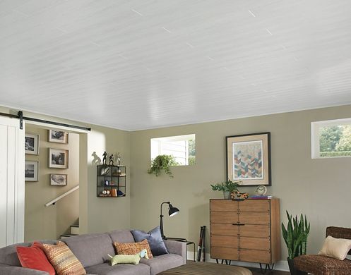 . Painted Nubby 48-in x 24-in 12-Pack. Here are many ways you could transform your outdated basement ceiling. In addition the textured look that popcorn ceilings give off makes drywall imperfections uneven surfaces and cracks almost unnoticeable.